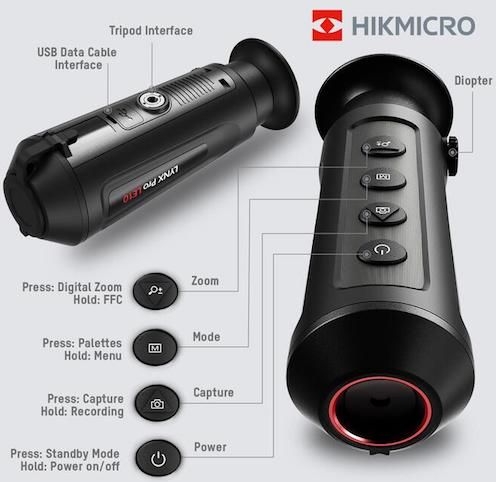 - Palettes: Black Hot, White Hot, Red Hot, Fusion